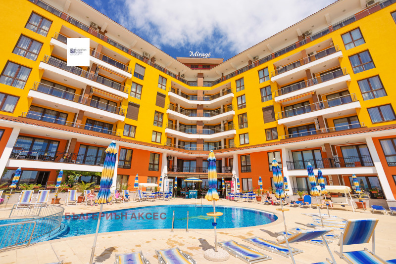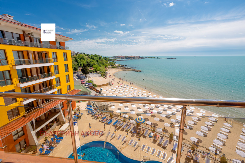 Рядка възможност да станете собственик на апартамент в луксозния к-с Мираж на първа линия море при Южния плаж на Несебър! Апартаментът е с две спални, две бани, хол и кухня и обща тераса за спалните и хола. Апартаментът има ПАНОРАМНИ ГЛЕДКИ ОТ ВСИЧКИ СТАИ В ПОСОКА СТАРИЯ ГРАД НА НЕСЕБЪР И ПЛАЖА. Продава се обзаведен. Такса поддръжка за 1 година е 6 евро за м2. Сделката е освободена от ДДС и няма да се дължи.