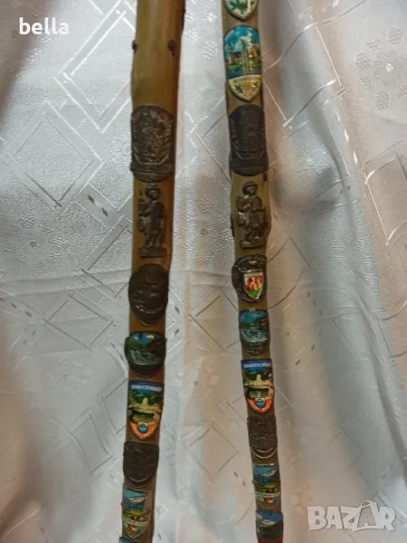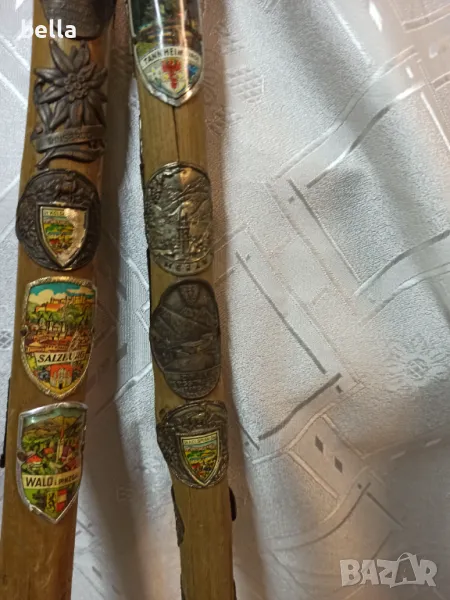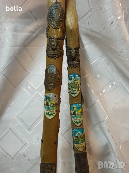 2 тиролски бастуна -и двата бастуна са почти пълни с типичните знаци ,значки . → Обява 49646977
