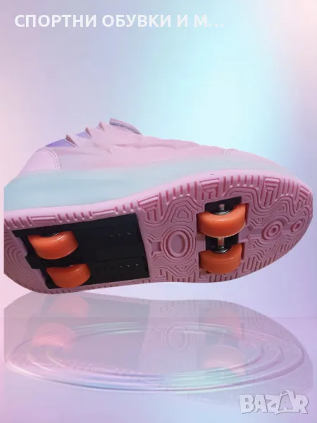 Много удобни,красиви и качествени обувки с 4 колелца на едната обувка и 4 колелца на другата обувка.Задните колелца се прибират в самата обувка и се изваждат с помощта на копче.