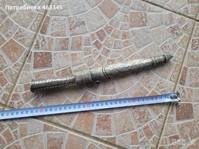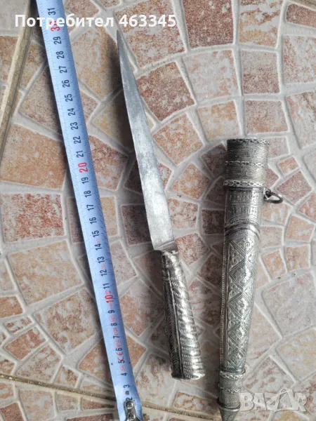 Изключителен османски кард от 18-ти век. Дръжката и канията с обковани със сребърна ламарина, среброто е ниска проба. Невероятна украса на канията с чукано и филигран. Без липси, без подбито и без счупено. Желязното острие е без ръжда. Прекрасно състояние