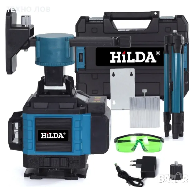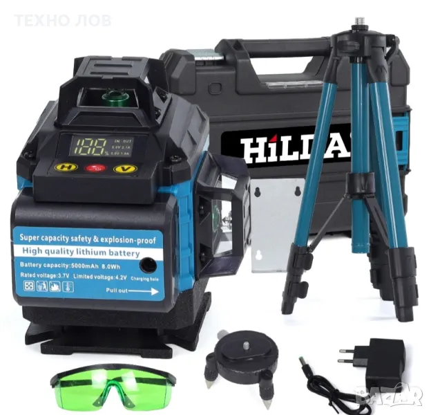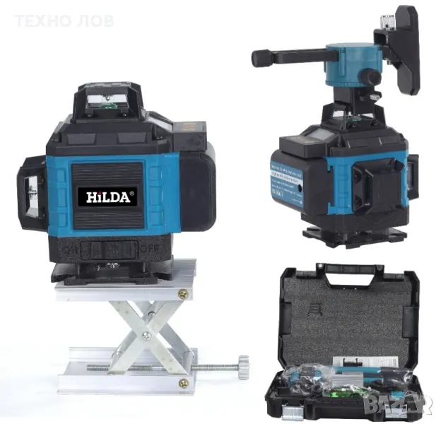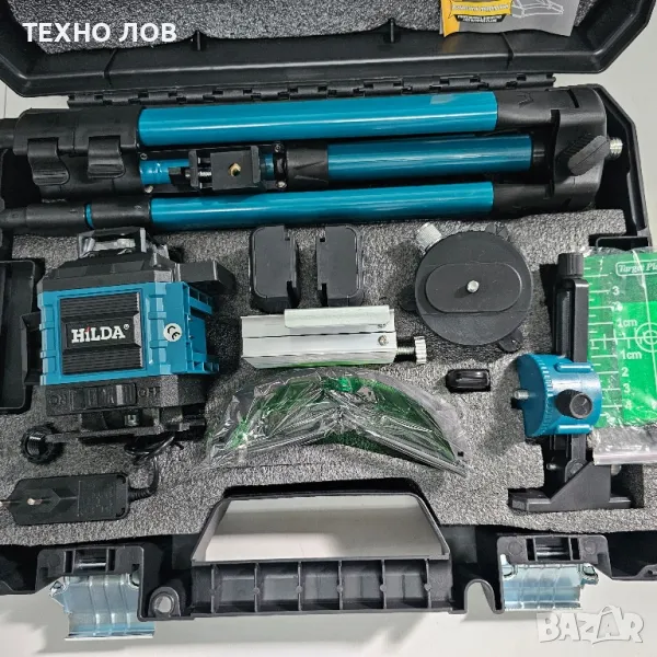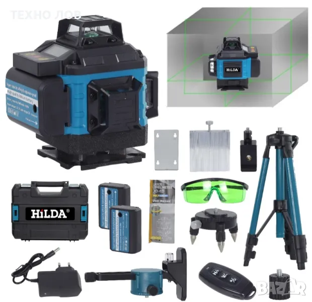 Лазарен нивелир 16 линии 4D 2 г. Гаранция 2 батерии пълен комплект + тринога