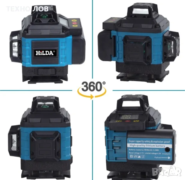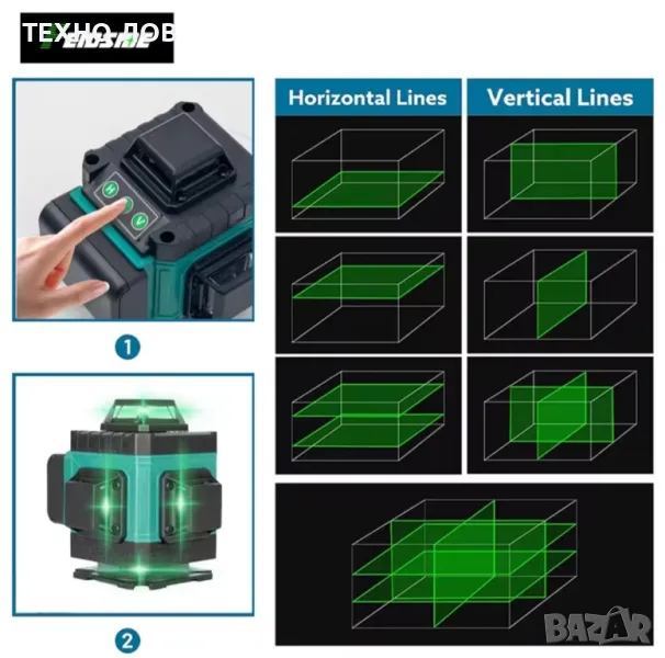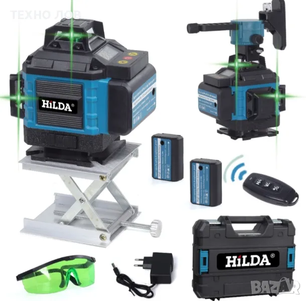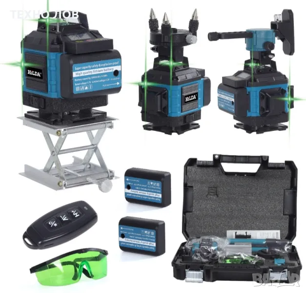 Лазарен нивелир 16 линии 4D 2 г. Гаранция 2 батерии пълен комплект +