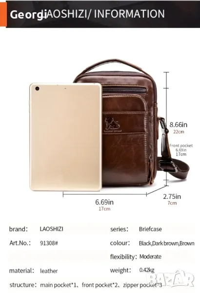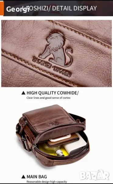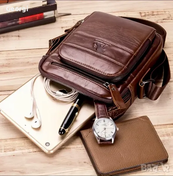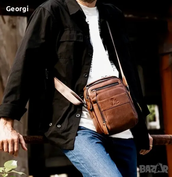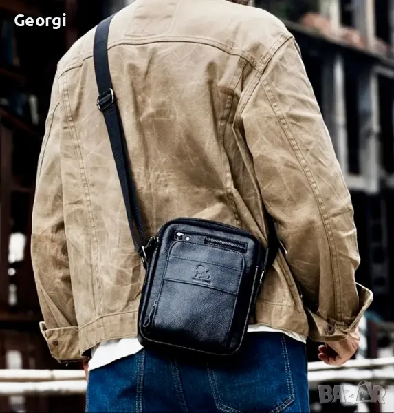 Практична, Елегантна и Стилна мъжка кожена чантичка (за през рамо) с професионално-ежедневна насоченост.