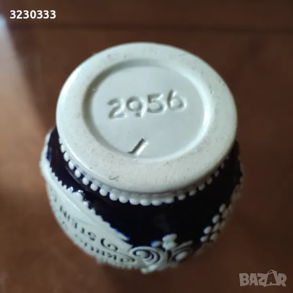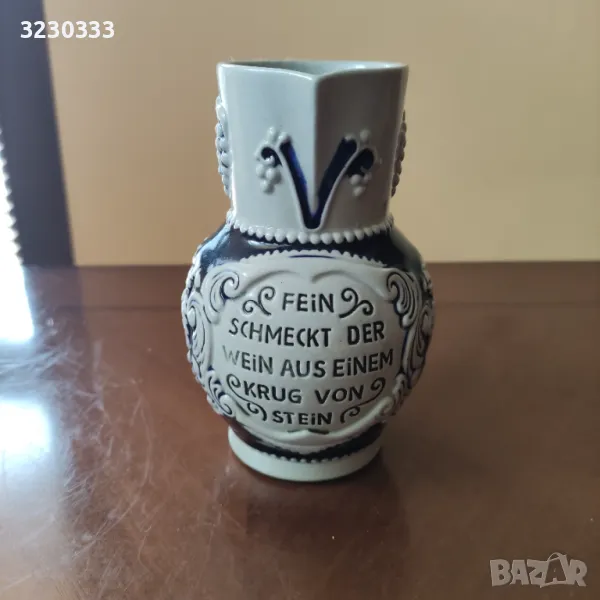Индивидуални немски колекционерски кани за вино солно глазирани, релефни с кобалтово сини декорации, ръчна изработка, около 1950 г. "Fein schmekt der Wein aus einem krug von Stein", което се превежда като: "Виното има добър вкус в стомна направена от камък". Произведени в Германия от Marzi&Reni , има релефен знак на дъното 2956, маркирани,без забележки, колекционерски. От ляво надясно: