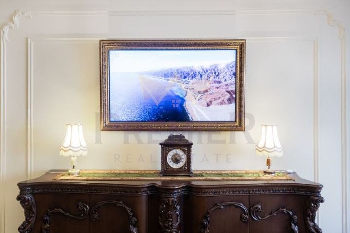 Дневен тракт с кухненски бокс: Просторен и светъл дневен тракт, обзаведен с комфортна мека мебел и телевизор. Кухненският бокс е напълно оборудван с всички необходими уреди за готвене и съхранение на храна, включително печка, хладилник и