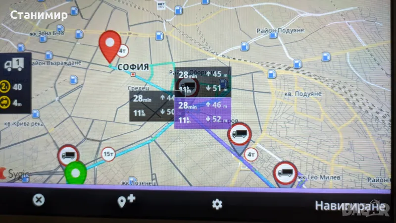глоби. Поддържа възможност за избор на платени или неплатени пътища.