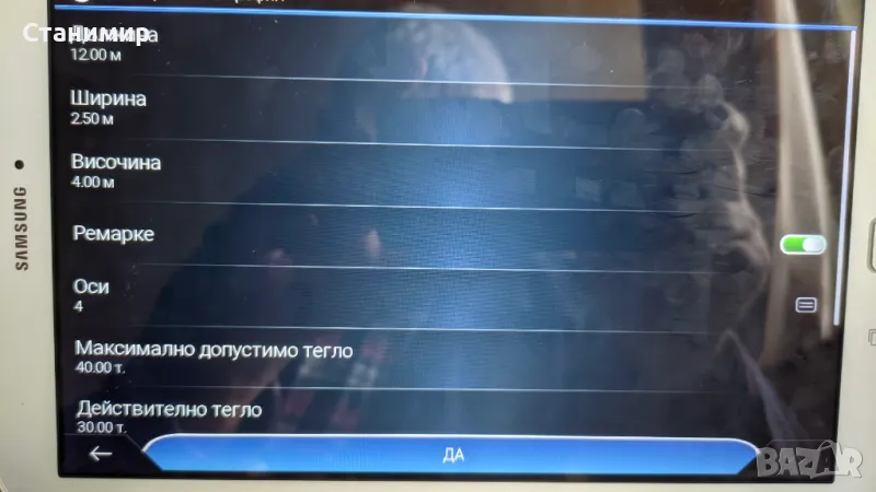 Навигация за камион с трафик, ADR и т.н. Таблет Samsung