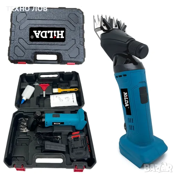 Акумулаторна машина за подстригване на овце HILDA има 2 батерии с напрежение 48 V, капацитет 9 Ah и зарядно устройство.