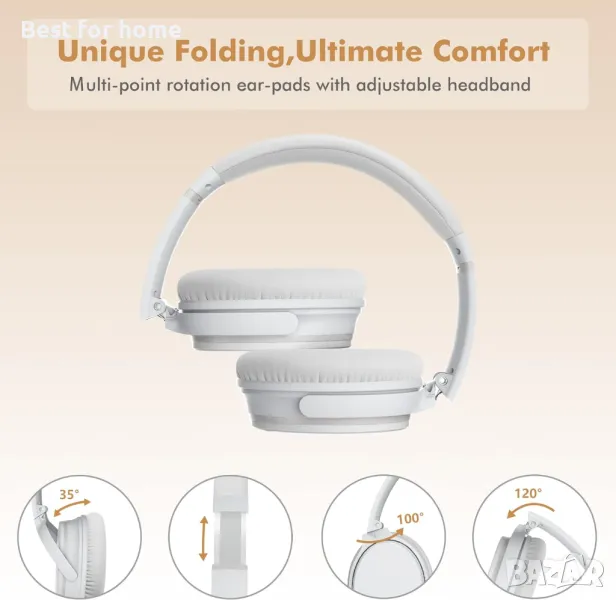 Сменяеми подложки за уши и издръжливи сгъваеми компактни опорни рамена: Само 0,4 lb леки за NC25 Bluetooth слушалки въз основа на ергономична структура на слушалките. 100 градуса завъртане навътре и 120 градуса навътре сгъваеми чаши за уши, предназначени за ежедневно съхранение и пътуване. Регулируемата подплатена лента за глава улеснява поставянето на всички размери глави. Толкова удобни, че забравяте, че ги носите