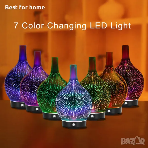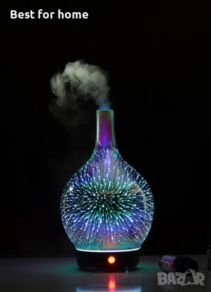 3D стъкло 120 мл ултразвуков дифузор за етерични масла, ултразвуков ароматен овлажнител Овлажнител с хладна мъгла Пречистване на въздуха (включена 1 бутилка без масло)