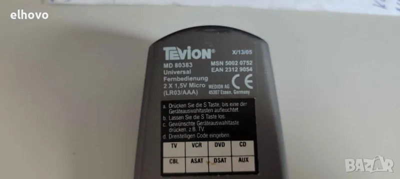 Дистанционно Tevion MD 80383, снимка 1 - Дистанционни - 49648942 Дистанционно Tevion MD 80383, снимка 2 - Дистанционни - 49648942 Дистанционно Tevion MD 80383, снимка 3 - Дистанционни - 49648942 Дистанционно Tevion MD 80383, снимка 4 - Дистанционни - 49648942 1/4