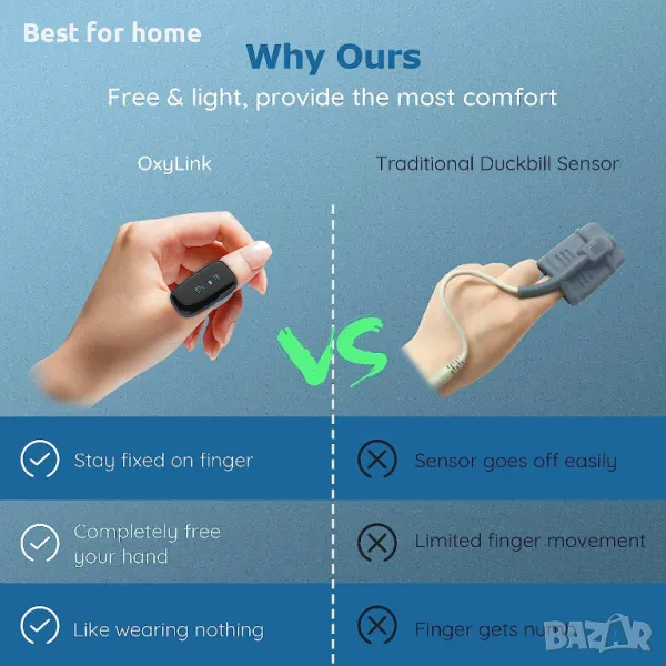 Преносим монитор за кислород: Сензорът с мек пръстен го прави удобен и никога не напуска пръста ви при ежедневна употреба. Oxylink не предоставя показания по време на тренировка, просто не е необходимо да се движите и да стоите неподвижно за около 10 секунди, за да получите показания.