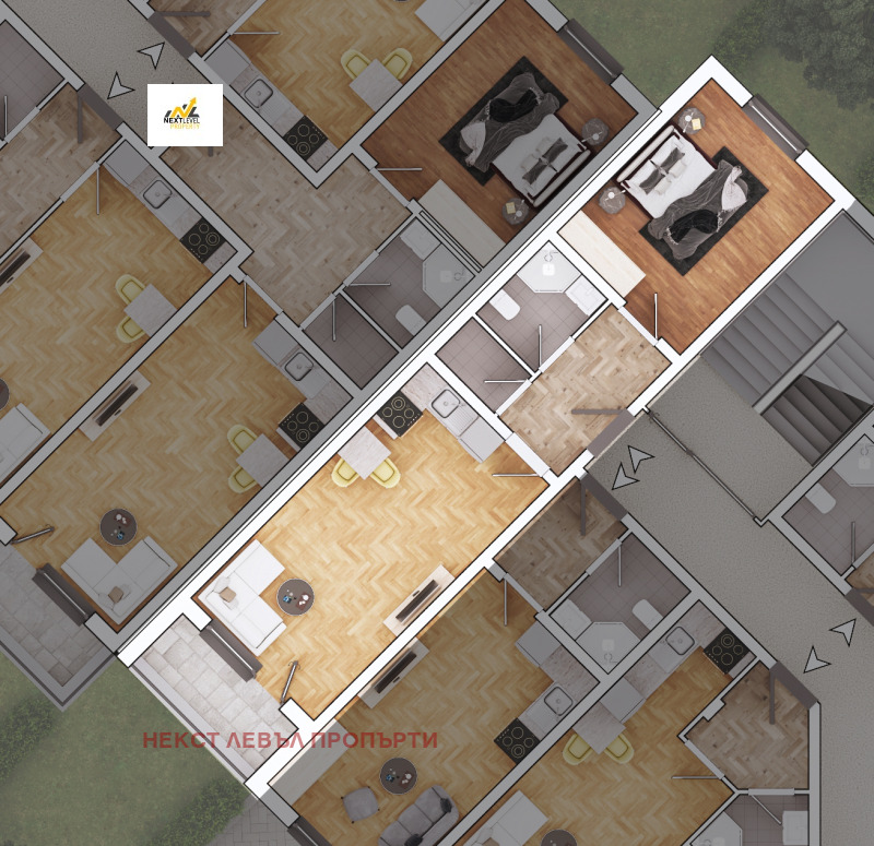 Агенция Некст Левъл Пропърти предлага на Вашето внимание двустаен апартамент от доказан строител в затворен комплекс със следното разпределение: антре, кухненски бокс с трапезария, спалня, баня с тоалетна, склад/мокро помещение и тераса.