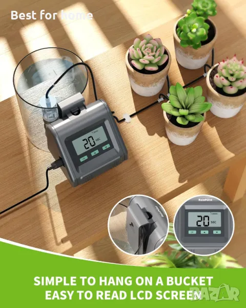 Автоматична напоителна система RAINPOINT за саксийни растения, автоматична напоителна система за растения с автоматичен/ръчен/отложен режим на напояване, система за напояване на вътрешни растения с помпа за почивка.