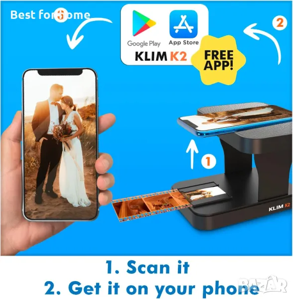 ЦИФРОВАЙТЕ ВАШИТЕ СТАРИ СПОМЕНИ. Преобразувайте любимите си стари филми и слайдове в цифрови спомени с този компактен мобилен скенер за филми. Скенерът за филми KLIM идва с безплатно и удобно за потребителя приложение, което ви позволява да сканирате и запазвате спомените си без усилие. Лесен и достъпен начин да гарантирате, че са запазени и достъпни за години напред.
