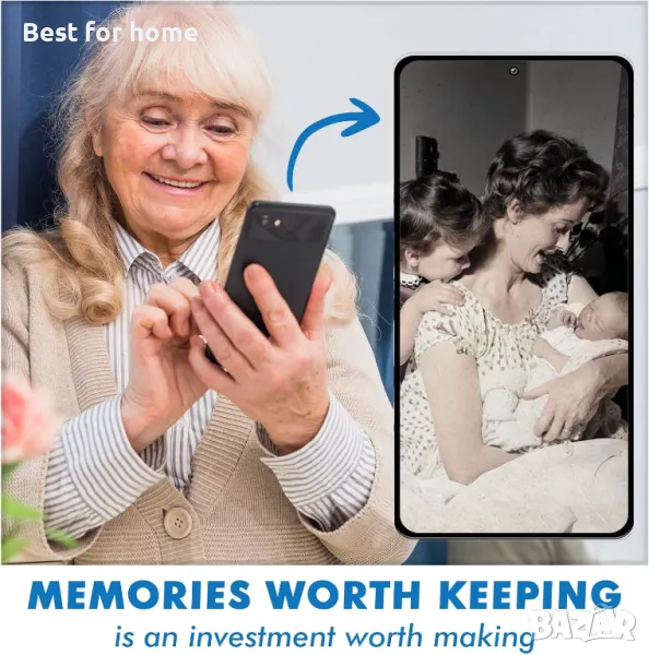 ЛЕСЕН ЗА ИЗПОЛЗВАНЕ. Разгънете скенера, поставете филма си, поставете смартфона си отгоре и започнете да сканирате! това е най-лесният начин да дигитализирате спомените си от уюта на дома си. Съвместим с 35 mm черно-бели, цветни позитиви, негативи и цветни диапозитиви. Освен това този пакет идва с батерии, почистваща кърпа за вашия филм и магнитна плоча за по-големи телефони.