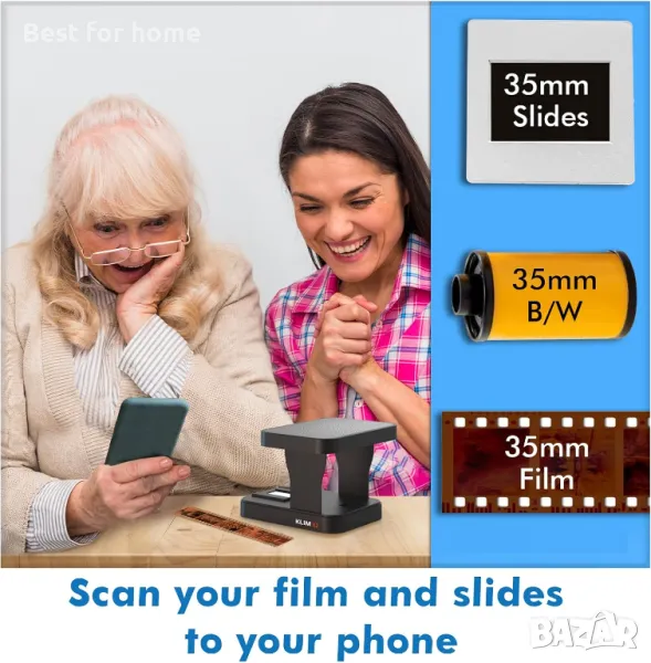KLIM K2 Мобилен 35 мм скенер за филми - Позитив и негатив, слайд, снимка, 35 мм комплект за проявяване на цветен филм.