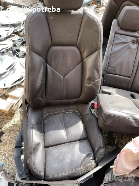 Продавам Употребяван Оригинален Кафяв(еспресо) Кожен Салон.Има отворен Айрбег,рамките имат кривини.Механизмите са в седалките.Кожата е здрава.Цената е символична.Porsche Cayenne 3.0D 92A/EG22/2012.Здрав и Работещ.Снимките са част от описанието.
