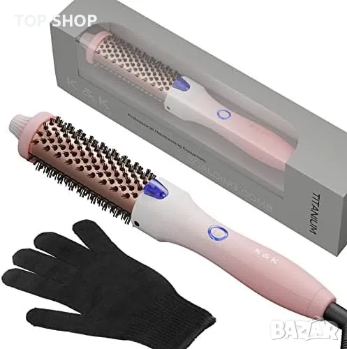 Съчетава пръчка за къдрене и гребен в едно.