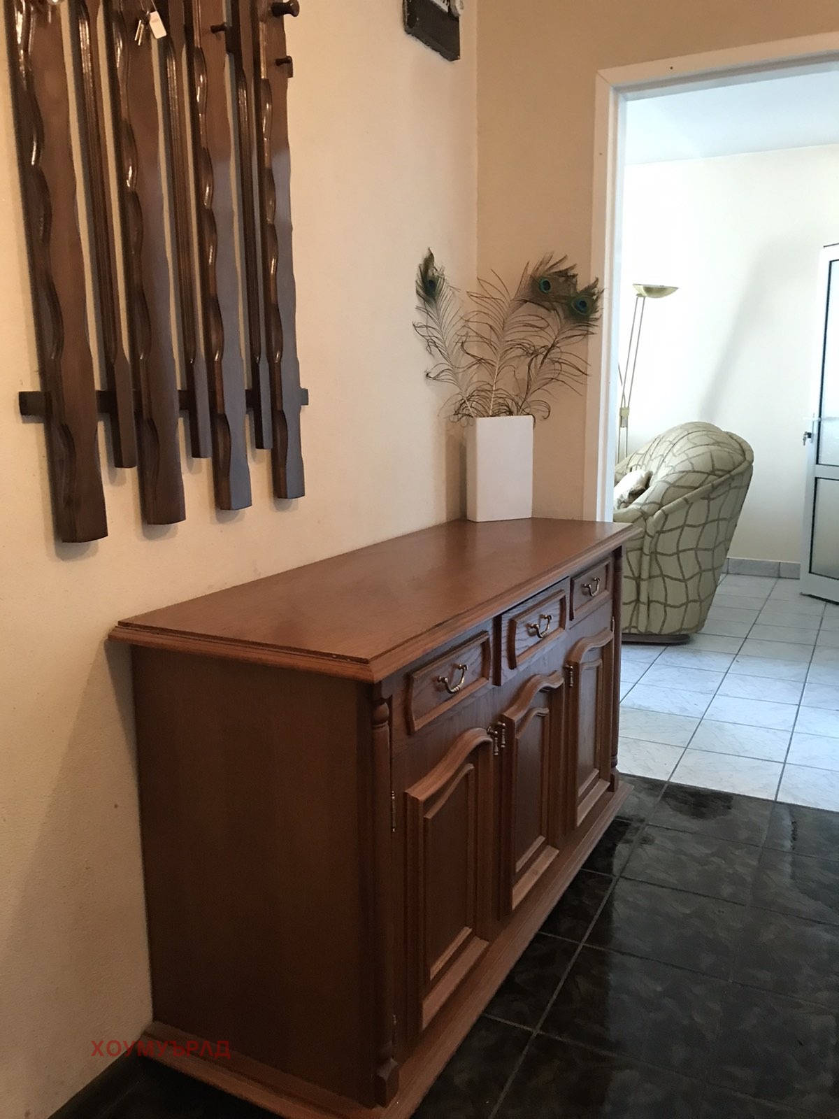 HomeWorld отдава под наем напълно обзаведен тристаен апартамент на 3-ти етаж с жилищна площ 90 кв.м. и следното разпределение: Хол, Дневна, Кухня, Коридор с обособено мокро помещени, Баня с тоалетна, Тоалетна, Спалня.