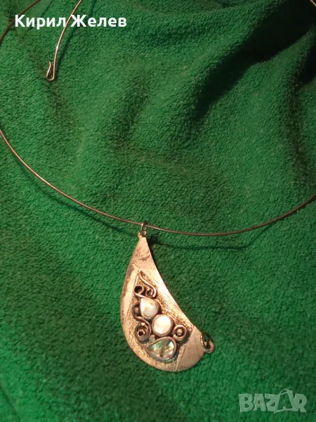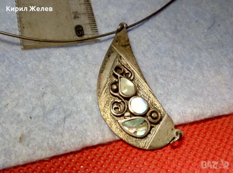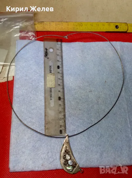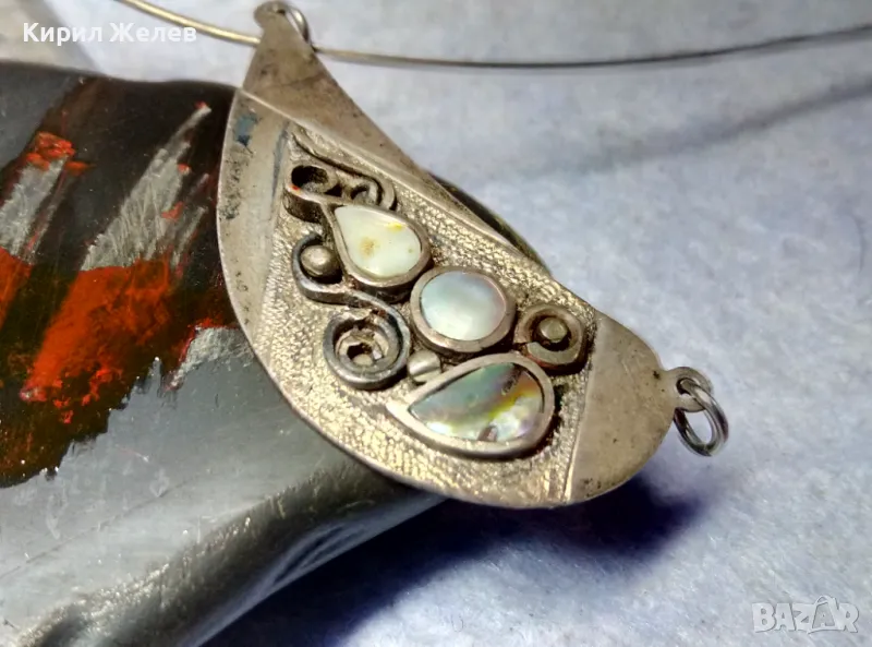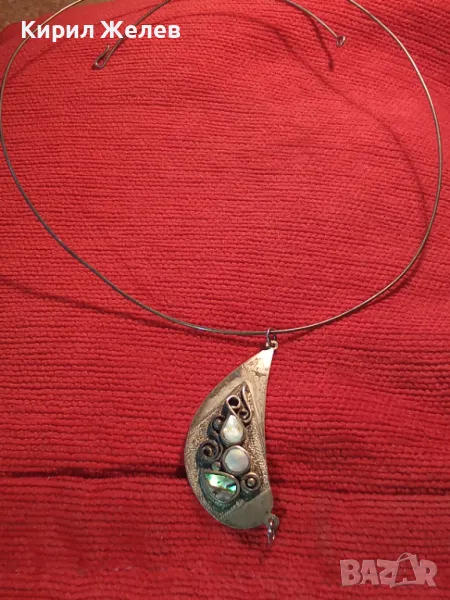РАЗКОШНА СРЕБЪРНА ОГЪРЛИЦА с КРАЛСКИ СЕДЕФ СРЕБРО ВИСОКА ПРОБА РЪЧНА РАБОТА ЧАСТ от КОМПЛЕКТ 47560