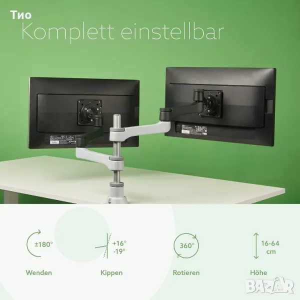За продажба се предлага вариантa на модела с едно рамо - на снимките има показан как изглежда и с втори монитор и добавена стойка за лаптоп, които не са включени в този комплект.