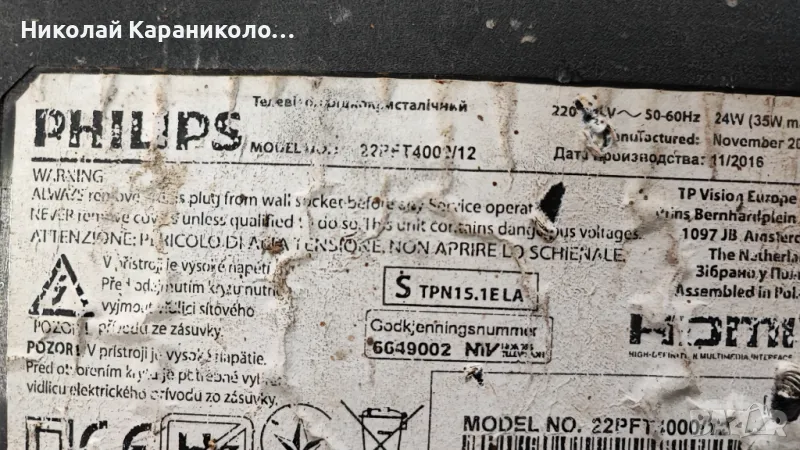 Продавам Power-TPV 715G6863-P01-001-002M,Main-715G6947-M02-000-004Y от тв PHILIPS 22PFT4001/12