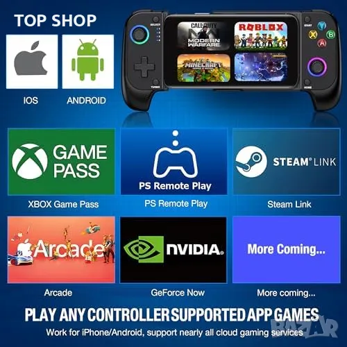 Нов Безжичен Контролер за Мобилни Игри с Turbo и Вибрация, Съвместим с iOS/Android