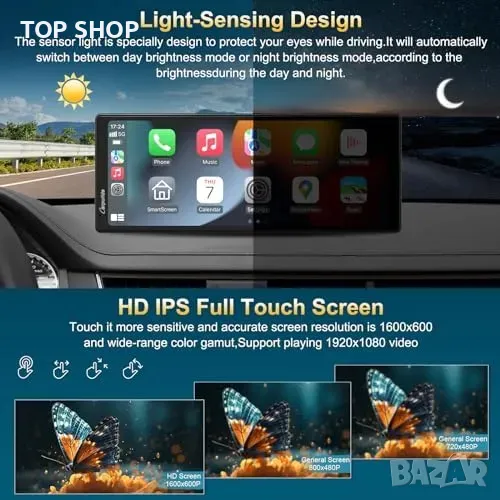 Ново CARPURIDE 9.3" Преносимо Carplay стерео, Bluetooth, Гласов Контрол
