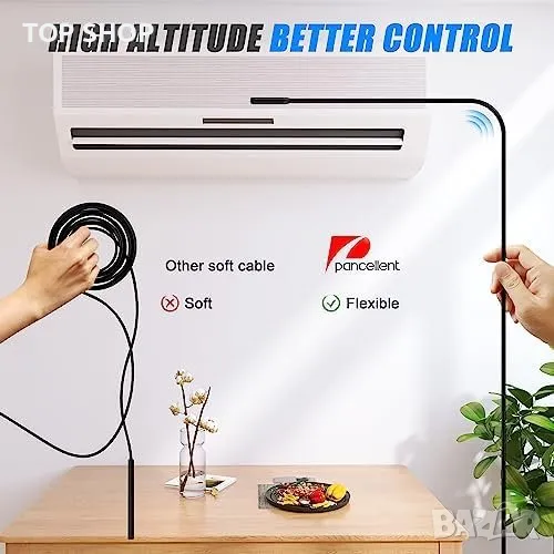 Полутвърд кабел с дължина 16,5 фута (5 м) и 360-градусово завъртане за гъвкаво гледане.
