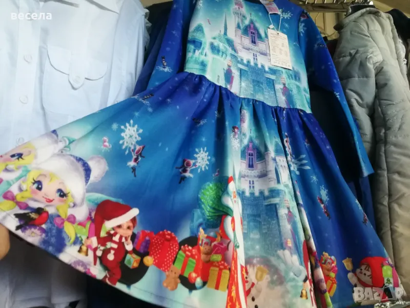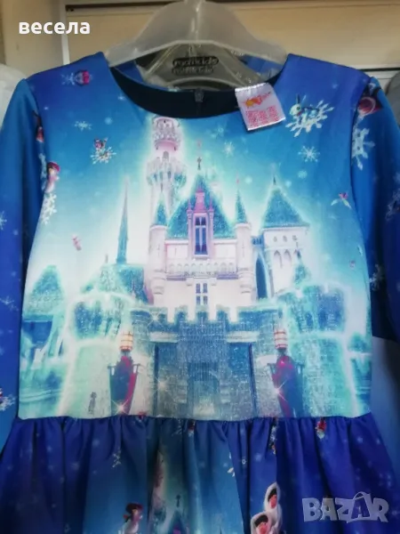 синя рокля леденото кралство, българско производство, елегантна, с дълъг ръкав. → Обява 49658016