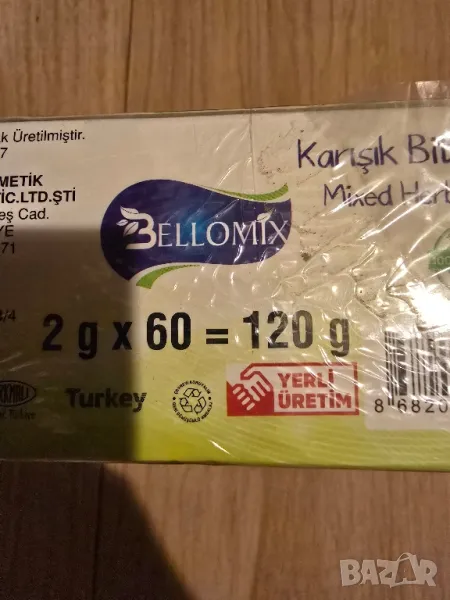 Смесен билков чай Bellomix Apple. Този продукт, подходящ за ежедневна употреба, е турско производство и се произвежда в съответствие с Турския хранителен кодекс. Този продукт, направен от растителни екстракти, ще ви помогне във вашето пътуване за отслабване. На капака на кутията има таблица за проследяване на теглото. Предлага се под формата на 2 гр. филтрирани торбички и има 60 филтрирани торбички в 1 кутия.