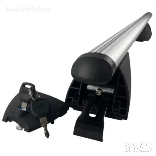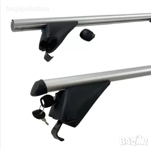 Комплекта включва: 2 напречни алуминиеви греди за багажник, механизъм за затягане с гумени уплътнители, гумени уплътнители и за долната страна на алуминиевият профил, заключващ механизъм с 2 бр. ключове