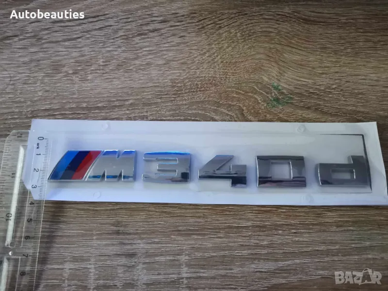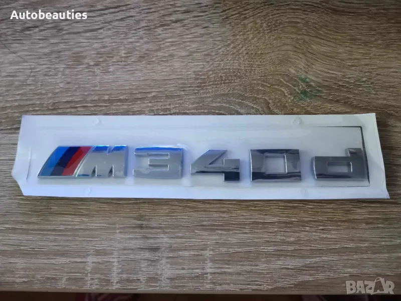 Нова емблема в сребрист гланц за модела на BMW М340d. Размерите са дадени на снимките. Височината на буквите е 2 см.