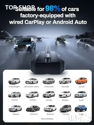 Съвместимост с 98% от автомобилите с фабричен CarPlay (модели от 2017 г.+).