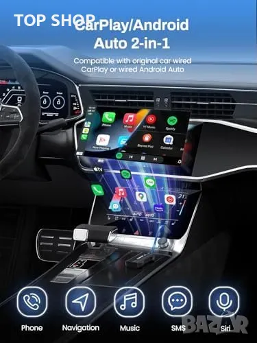 Нов Безжичен CarPlay адаптер за автомобили 2017+ iPhone/Android Auto