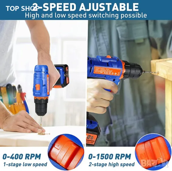 Нова Акумулаторна електрическа бормашина с LED светлина, 2 скорости → Обява 49658490