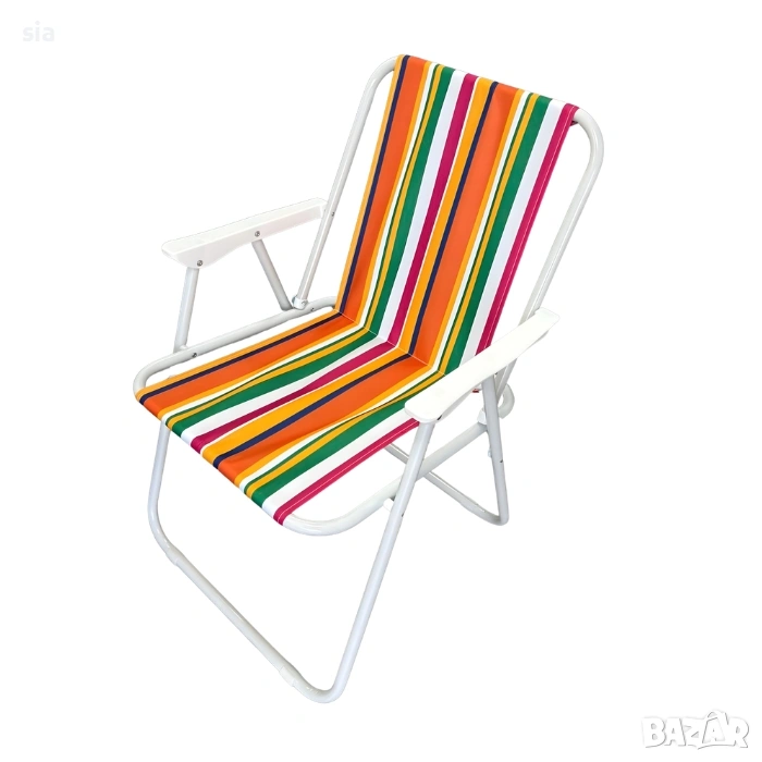 Практичен и удобен сгъваем стол с подлакътници, подходящ за използване както на открито, така и у дома. Идеален избор за плаж, къмпинг, риболов, градина, тераса или пикник.