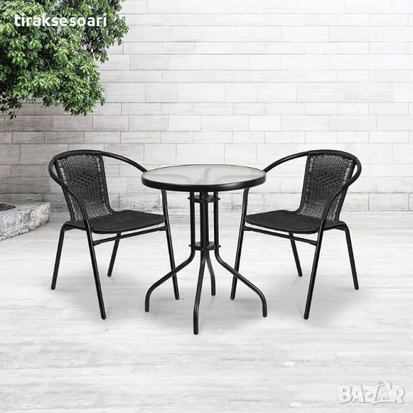 СЕЗОННА РАЗПРОДАЖБА Черна Маса и 2 стола за градина Градински Мебели