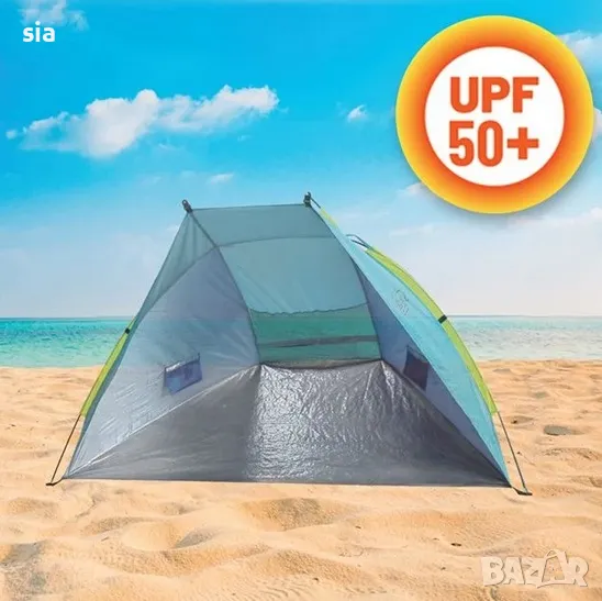 Палатка, Плажна палатка в синьо и небесно синьо, лесна за поставяне, изработена от плат с висок UPF