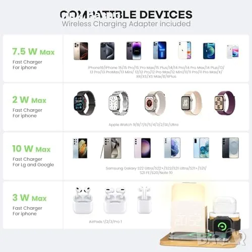 Нова Зарядна станция с аларма, лампа и MagSafe за iPhone/Watch/Pods