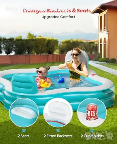 Нов Надуваем басейн QPAU с облегалки – двор/градина, възрастни/деца