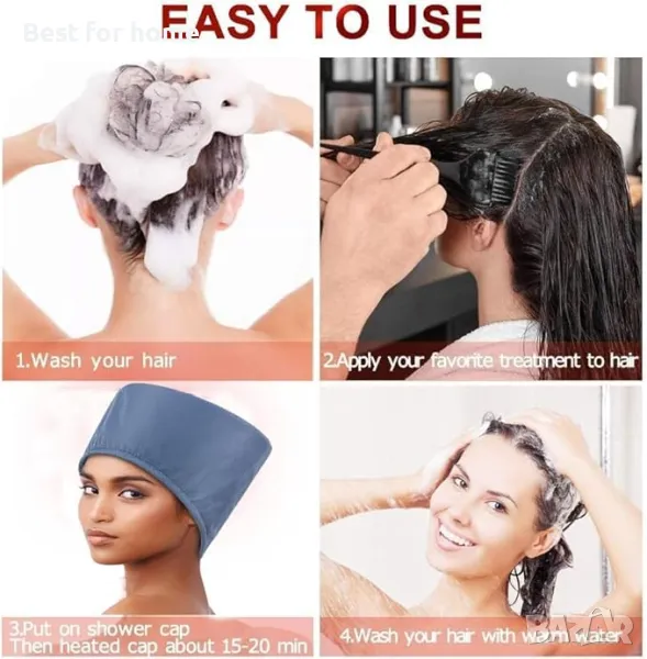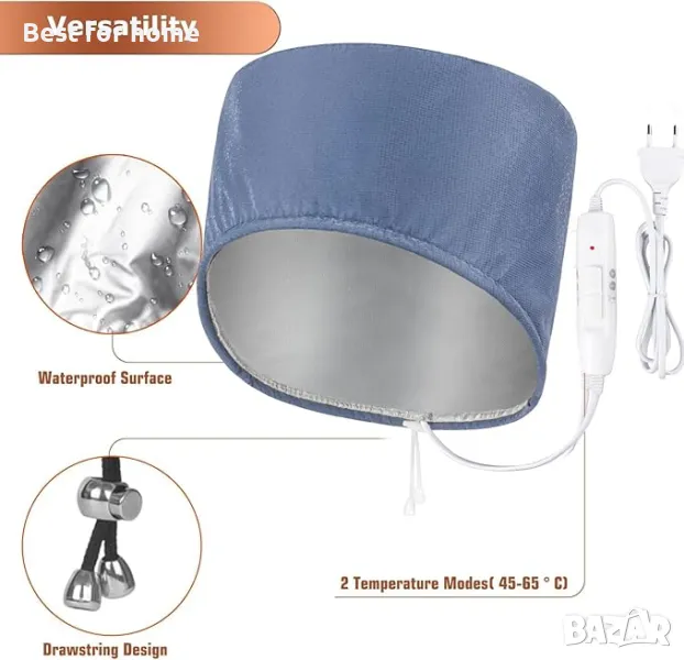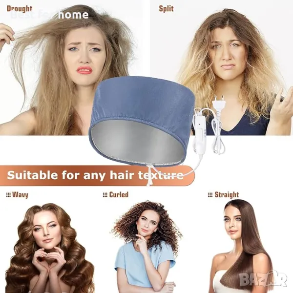 Супер качество и ефективност - Нагревателна капачка от подобрен материал, не се намачква лесно. Загрява бързо като професионални слушалки. Увеличава десетократно ефективността на лечението, приложено върху вашата коса. Резултатът: косата е по-добре хидратирана и по-лесна за разресване.