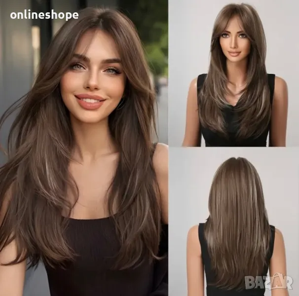 Дълга коса - Перука - Естествен вид , цвят кафяв 55см , Плътност 150%