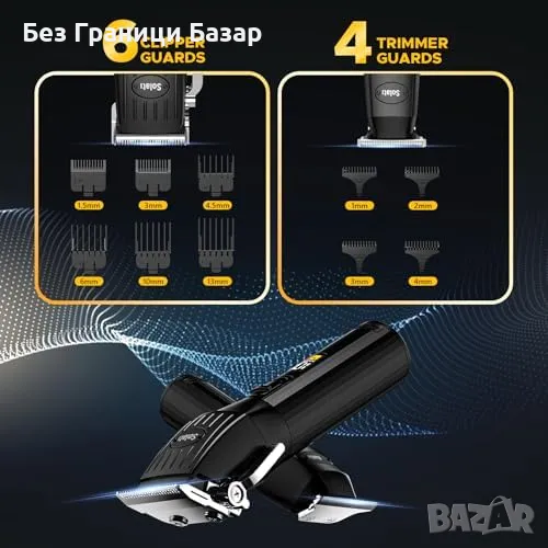 Основна машинка с 6 гребена (1.5–13 мм) + T-образен тример с 4 гребена (1–4 мм)