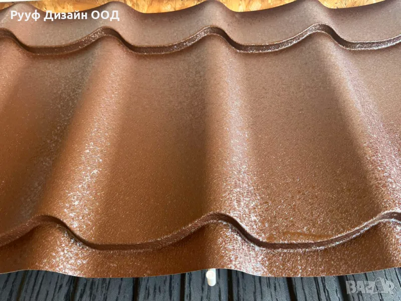 Модел Кингас 15 с елегантна и семпла форма в светло кафяв цвят (РАЛ 8017), който подобрява външния вид на къщата, придавайки елегантност и интересен дизайн. Предназначена за всички видове покриви с наклон над 14 градуса. Профил с нежна единична вълна - класически външен вид, който успешно се съчетава както с по-модерни сгради, така и е подходяща при ремонт на стари покриви. Безспорно предимство е покритие 3Д МАТ - Кристал. Освен, че е с по-различна и плътна текстура, дизайн наподобяващ ледени кристали, то това покритие се отличава и с по-висока устойчивост на корозия. Това твърдение е подкрепено с писмена гаранция за период от 40 години.