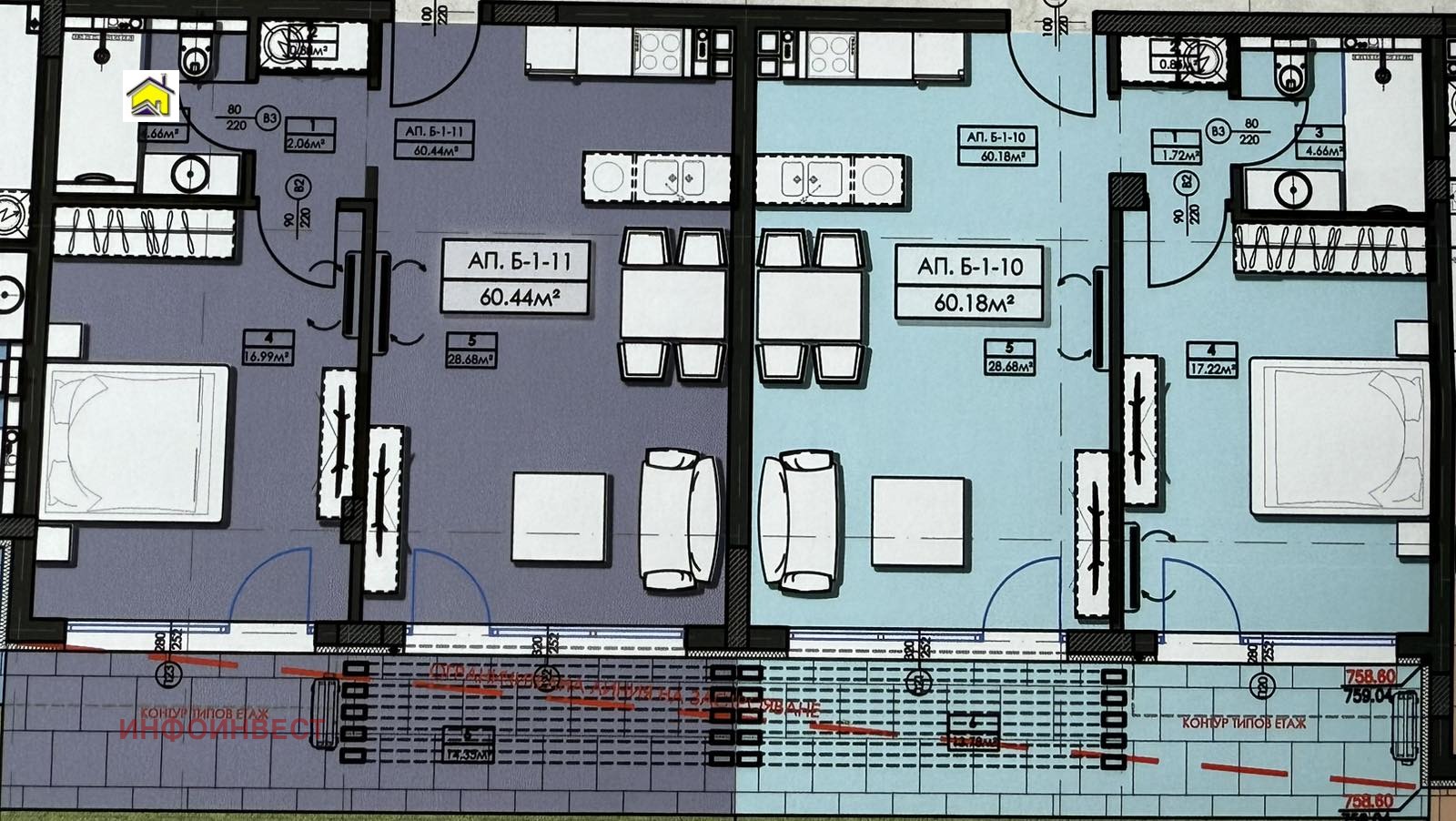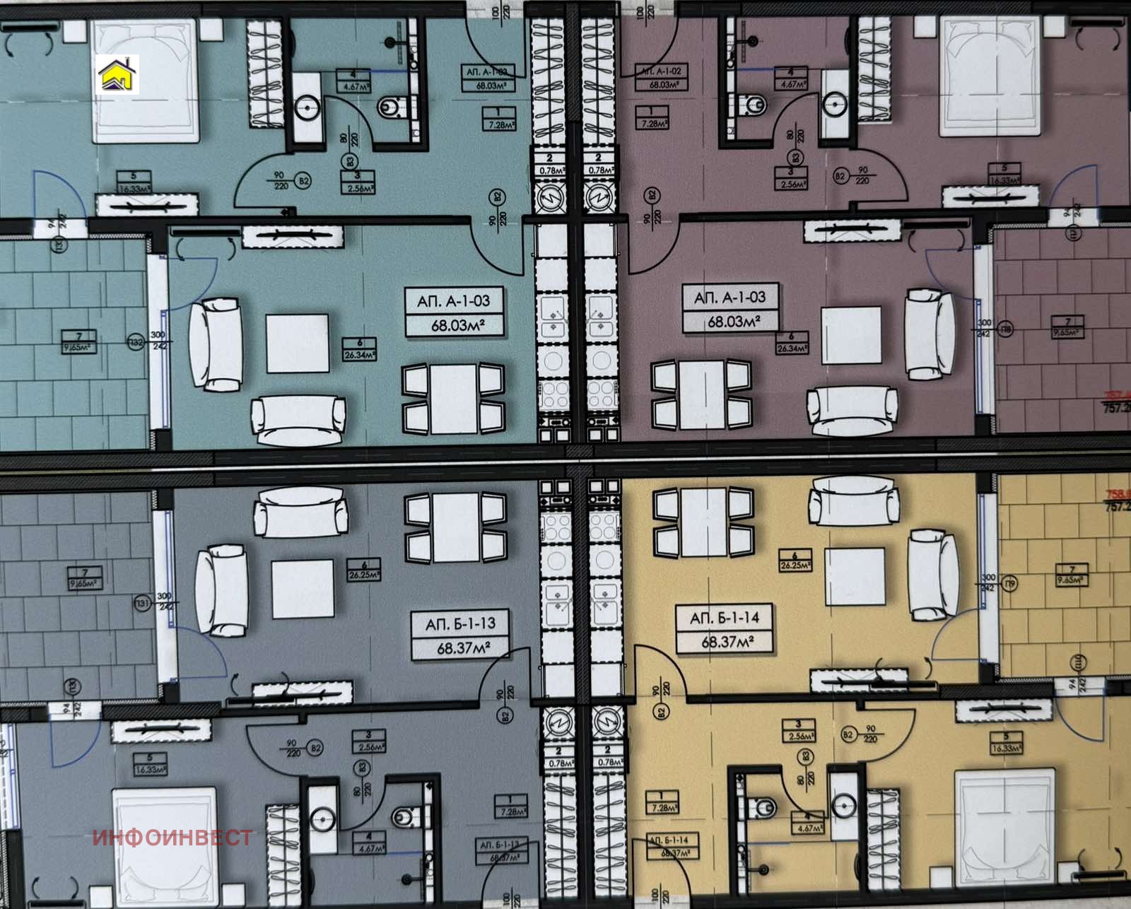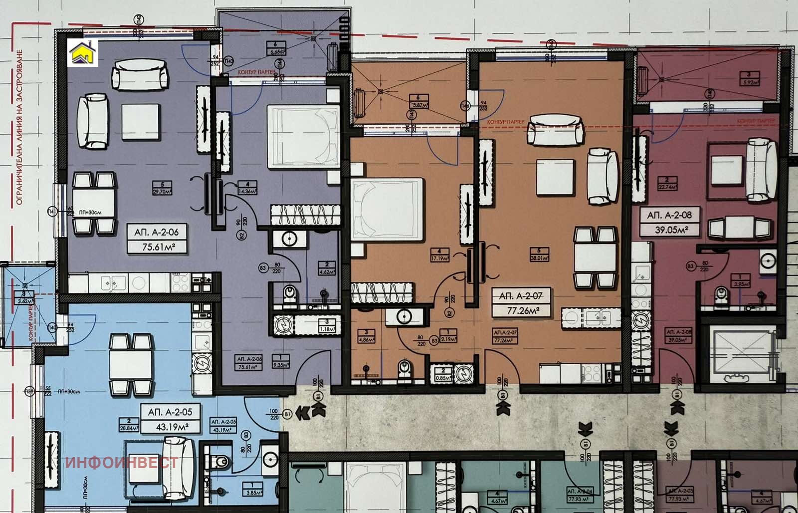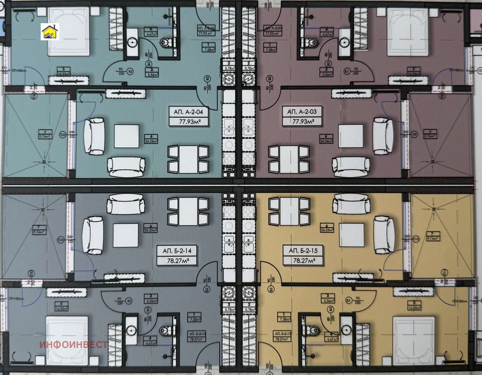 Едностайни, двустайни, тристайни апартаменти с удобно и модерно разпределение. Разположени на първи и втори жилищен етаж.