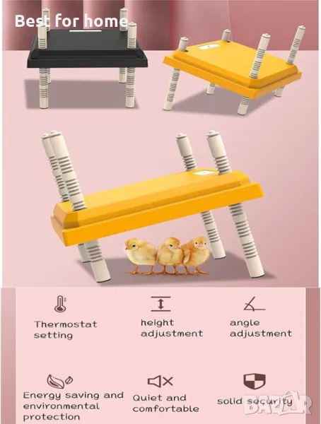 Описание на продукта: Този нагревател з за пилета имитира топлината на кокошка, поддържа я топла и удобна, позволявайки на пилетата естествено да влязат в дъската за мътене, за да се насладят на топлина и защита, точно като защитата на кокошката