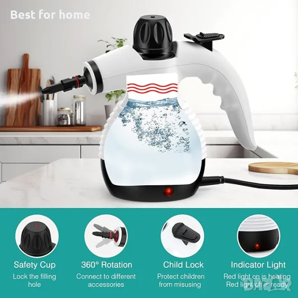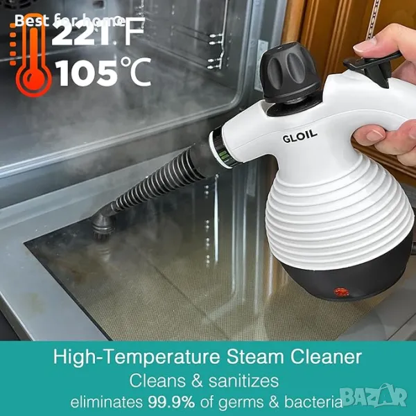 Мощна гореща пара: Парочистачката GLOIL загрява, за да произведе пара с висока температура 221 F (105 C) за почистване на мръсотия, прах, мазнини и др. Направете дома си като нов.