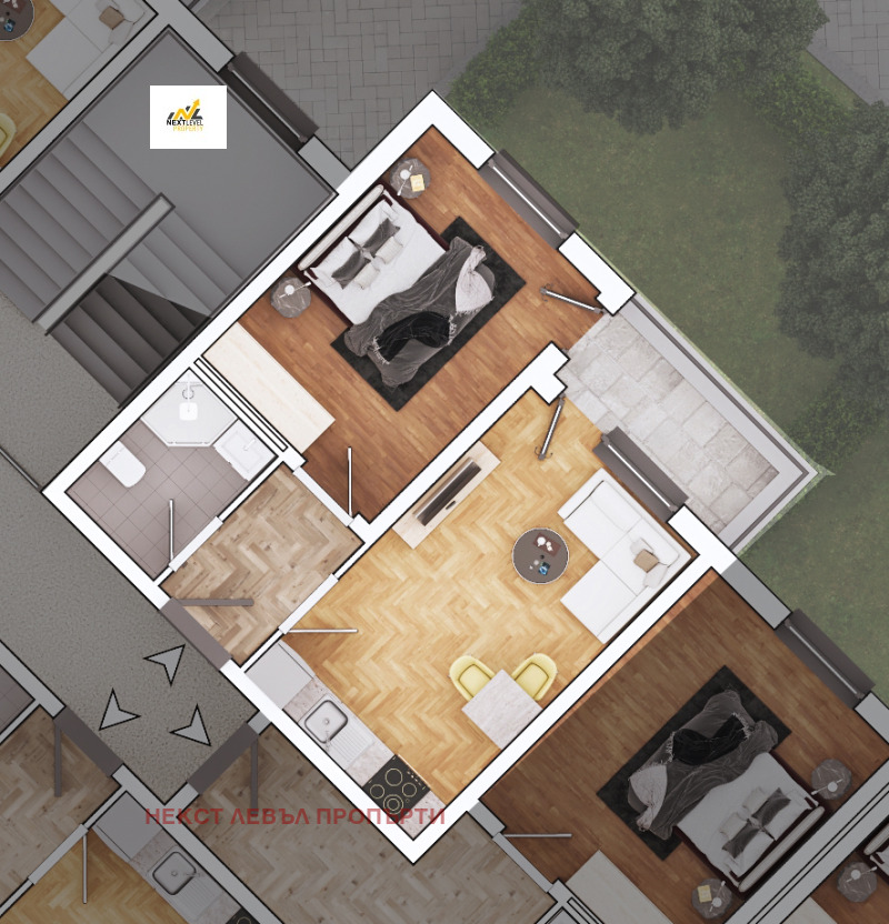 Агенция Некст Левъл Пропърти предлага на Вашето внимание двустаен апартамент от доказан строител в затворен комплекс със следното разпределение: антре, кухненски бокс с трапезария, спалня, баня с тоалетна и тераса.